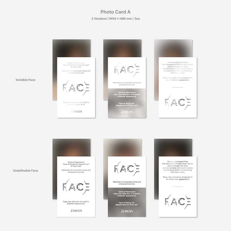 – PHOTOCARD A: 3 piezas 2 tipos (la imagen varia por versión)