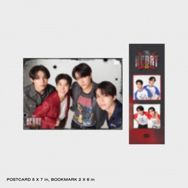 Una postal de 13 x 18 cm, un marcapáginas de 5 x 15 cm y dos tarjetas fotográficas de 21 x 5,5 cm.